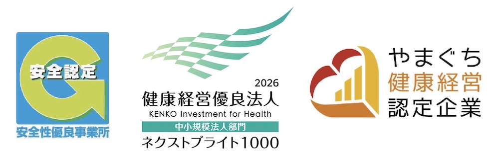 琴崎産業・長州貨物・琴崎デリバリーはGマーク・健康経営優良法人2025・やまぐち健康経営認定企業の認定を受けています。